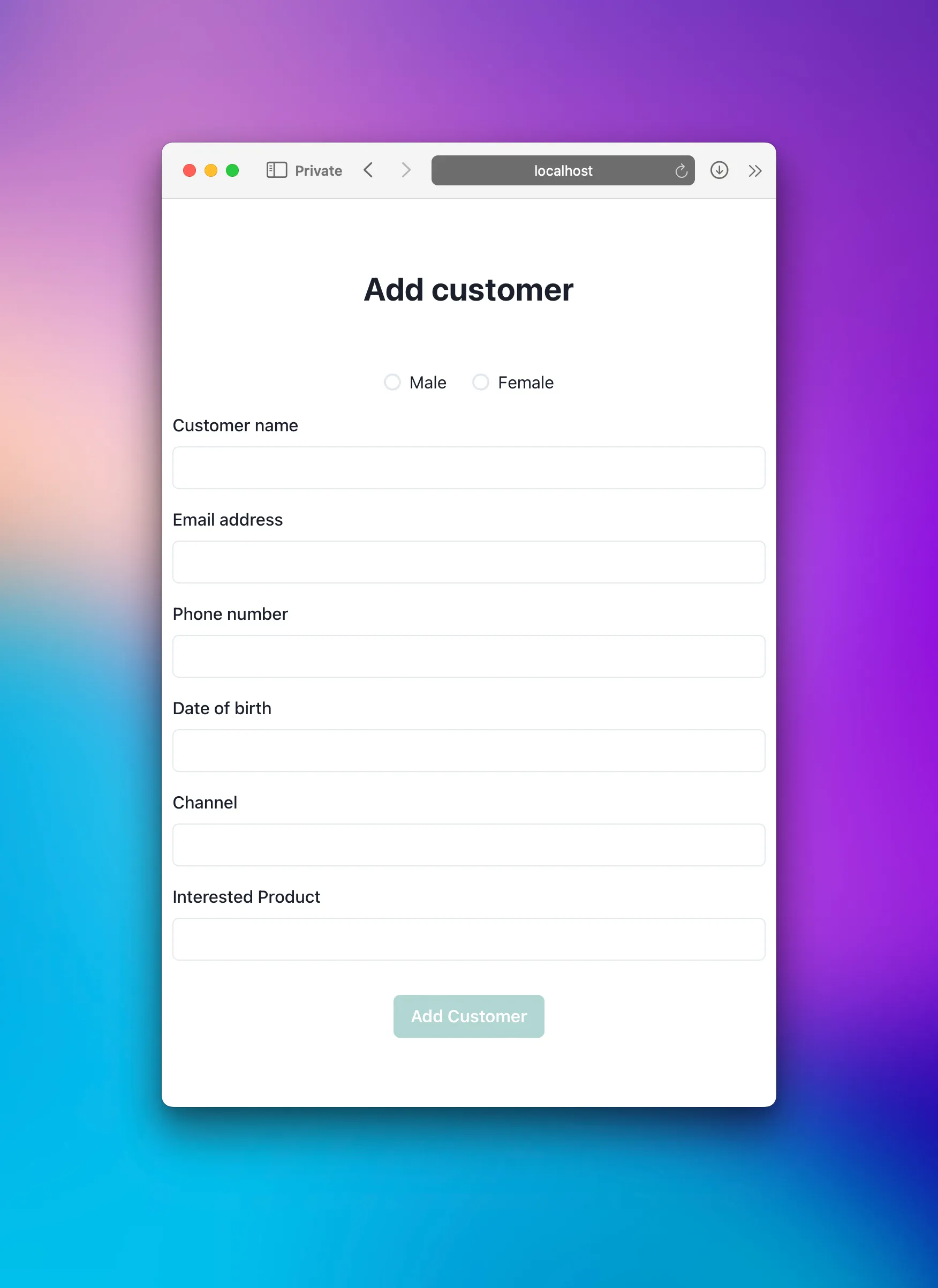 With Chakra UI integrated into the codebase, we will create the CRM interface. First, we will make the main page that prompts users to enter the customer data using the form page.